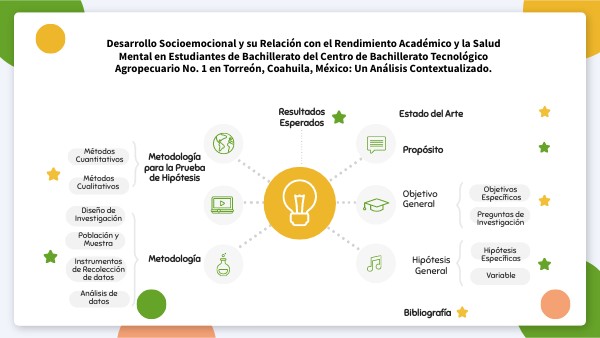 Hipótesis Específicas: • Hipótesis 1: Los estudiantes del CBTA No. 1 con un mayor desarrollo socioemocional tendrán un mejor rendimiento académico. • Hipótesis 2: Los estudiantes del CBTA No. 1 con un mayor desarrollo socioemocional tendrán una mejor salud mental. • Hipótesis 3: El contexto social, cultural y económico influirá en la relación entre el desarrollo socioemocional, el rendimiento académico y la salud mental en los estudiantes del CBTA No. 1.