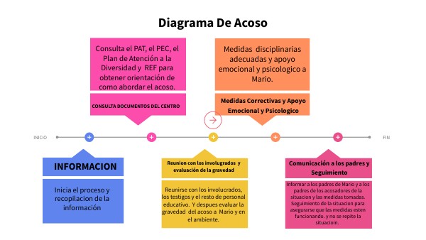 Consulta el PAT, el PEC, el Plan de Atención a la Diversidad y REF para obtener orientación de como abordar el acoso.