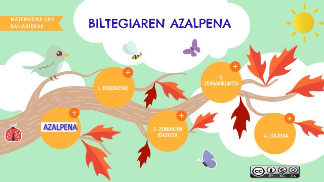 Site tresna digitalaren bidez, 2. mailako matematikako hainbat eduki digitalak azaltzen dira. Biltegi honek, matematika ikaskuntza errazteko, irakaskuntza hobetzeko eta baliabide desberdinak eskaintzeko balio du.Lehenengo orrian izenburua azaltzen da: Matematika baliabideak. Goian eskuinean, Orri nagusia , gezian klikatuz, lau atal agertuko dira: 1. ERAGIKETAK 2. ZENBAKIEN IDAZKETA 3. ZENBAKIKUNTZA 4. JOLASAK Atal bakoitzean azaltzen diren ariketak batzutan, beste atalekoak izan daitezke batera daudelako.