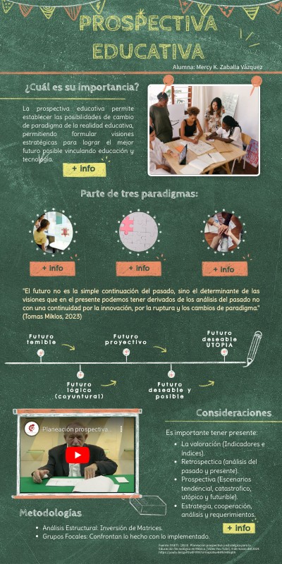 La prospectiva educativa permite establecer las posibilidades de cambio de paradigma de la realidad educativa, permitiendo formular visiones estratégicas para lograr el mejor futuro posible vinculando educación y tecnología.