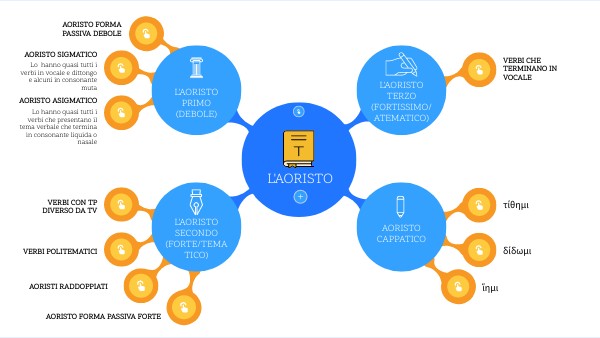 - Aoristo gnomico: usato per i proverbi/sentenze, non si traduce con un tempo storico ma con il presente.