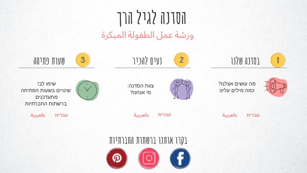 הסדנה לגיל הרך פתוחה לשירותכן , ונשמח לסייע במגוון צרכים: