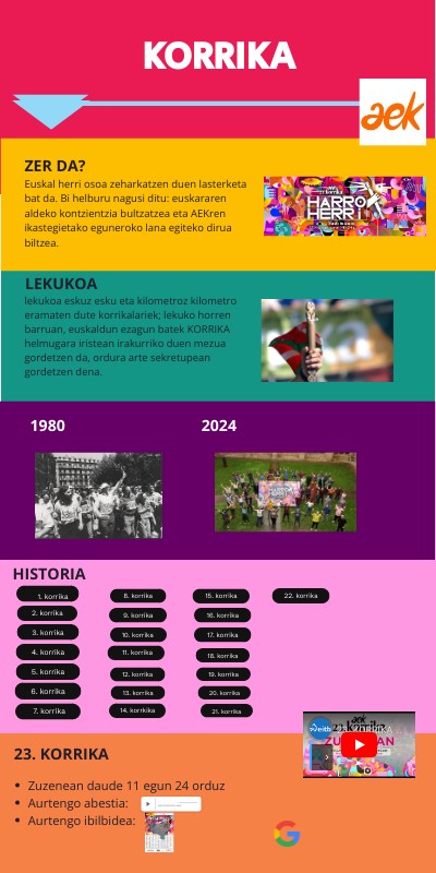 Euskal herri osoa zeharkatzen duen lasterketa bat da. Bi helburu nagusi ditu: euskararen aldeko kontzientzia bultzatzea eta AEKren ikastegietako eguneroko lana egiteko dirua biltzea.