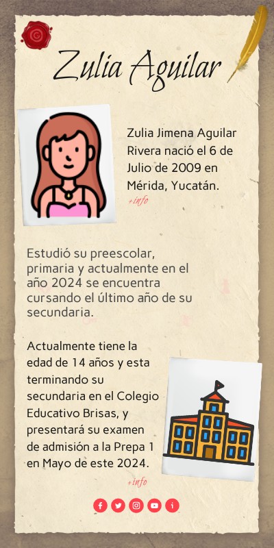 Zulia Jimena Aguilar Rivera nació el 6 de Julio de 2009 en Mérida, Yucatán.