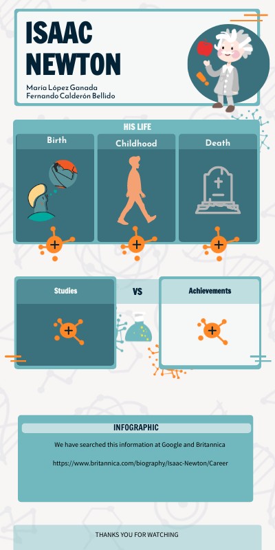 He was borned on December 25, 1642, at Woolsthorpe, Lincolnshire, England. His parents were Hannah Ayscough and Isaac Newton Sr. Before his birth, his father dead of pneumonia. There were difficult times because there was the Civil War. His mother was fightning for her family and her farm.