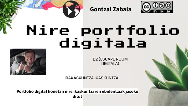 Nire izena Gontzal Zabala Elortegui da. HLHI Lemoiz eskolako Arte irakaslea naiz. Portfolio honetan, B2 ubidean, eskatzen diren hiru moduluetako atazak izango dituzu eskuragarri. Aurkibidean ataza bakoitzera bideratuko zaitut, modu errezean, egin ditudan lanak eskura ditzazun.