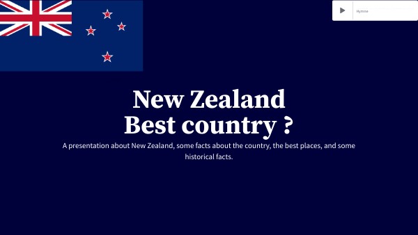 In this presentation we will talk about New Zealand, a short description of the country, some touristic places, some historical facts and so why it's the best country to visit !