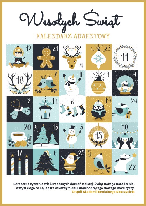 Serdeczne życzenia wielu radosnych doznań z okazji Świąt Bożego Narodzenia, wszystkiego co najlepsze w każdym dniu nadchodzącego Nowego Roku życzy Zespół Akademii Genialnego Nauczyciela