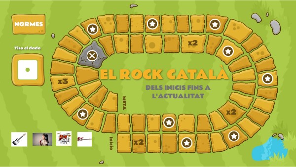 - Cada jugador escull una fitxa; guitarra, cant, bateria i baix. (instruments base de l' agrupació del rock).