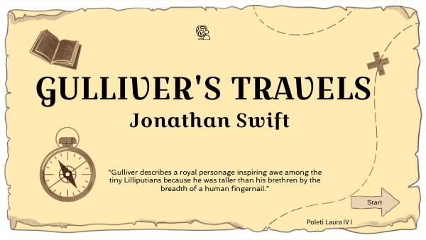 style Gulliver is an invented, satirical character, he somehow always find himself displaced. The text is wrote in first person, in prose style and in matter-of-fact
