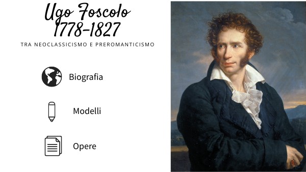 E' il primo romanzo epistolare della letteratura italiana, ovvero un romanzo costituito da lettere. Il modello è il romanzo epistolare di Goethe I dolori del giovane Werther (dove manca la componente politica). Trama: Jacopo Ortis è un esule veneziano che, per sfuggire alle persecuzioni austriache, si rifugia presso i Colli Euganei. Qui conosce la famiglia del signore T. e sua figlia Teresa, di cui si innamora. Teresa è promessa sposa a Odoardo, cosa che turba l'animo di Ortis, già turbato per questioni socio-politiche. Il dolore raggiunge l'apice al matrimonio della stessa. Ortis, così, risoluto a suicidarsi, torna a Venezia per un breve saluto alla madre e poi si suicida. Tutta la storia è narrata attraverso le lettere che Jacopo invia all'amico Lorenzo Alderani e che, infine, pubblica l'epistolario.