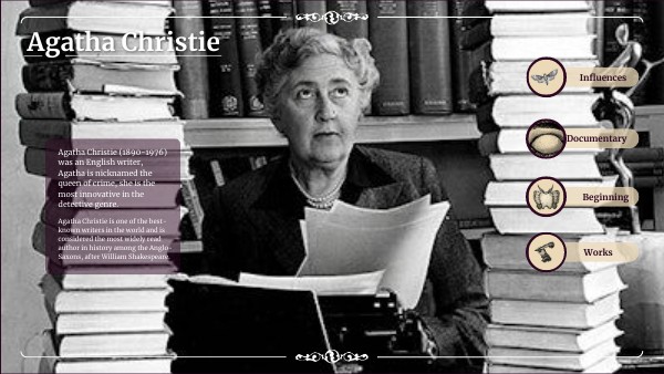 Agatha Christie (1890-1976) was an English writer, Agatha is nicknamed the queen of crime, she is the most innovative in the detective genre.