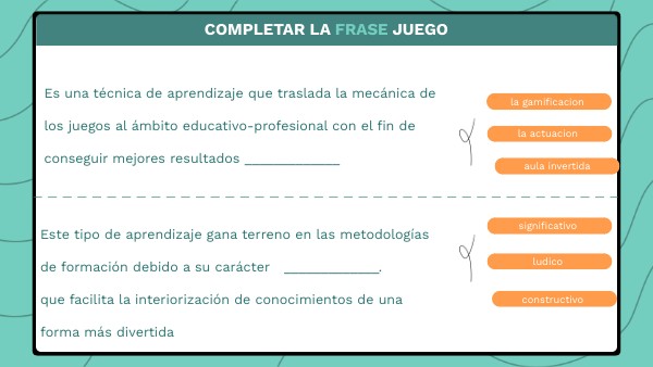 Este tipo de aprendizaje gana terreno en las metodologías de formación debido a su carácter _____________. que facilita la interiorización de conocimientos de una forma más divertida
