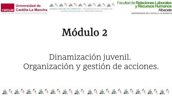 Código: SSCE0109 Relación de unidades de competencia que configuran el certificado de profesionalidad: UC1874_3: Organizar y gestionar servicios de información de interés para la juventud. UC1875_3: Organizar y gestionar acciones de dinamización de la información para jóvenes. UC1023_3: Intervenir, apoyar y acompañar en la creación y desarrollo del tejido asociativo. UC1876_3: Organizar acciones socioeducativas dirigidas a jóvenes en el marco de la educación no formal. Competencia general:
