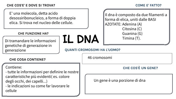 Contiene: - tutte le informazioni per definire le nostre caratteristiche più evidenti( es. colore degli occhi, dei capelli...) - le indicazioni su come far lavorare le cellule