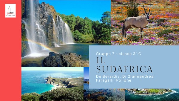 Presentazione sullo Stato della Repubblica Sudafricana, situato nell'estremo meridione del continente africano a cura del gruppo 7 dei lavori di ricerca sull'Africa composto dagli alunni De Berardis, Di Giannandrea, Faragalli e Polione della classe 3^C (a.s. 2023/2024).