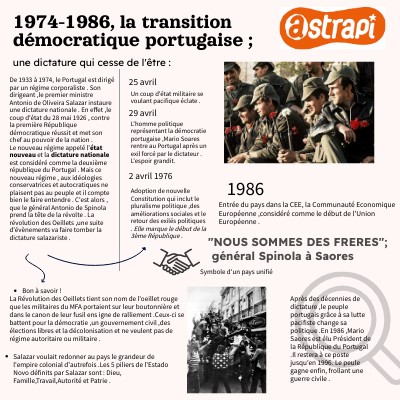 Un coup d'état militaire se voulant pacifique éclate . L'homme politique représentant la démocratie portugaise ,Mario Soares rentre au Portugal après un exil forcé par le dictateur . L'espoir grandit. Adoption de nouvelle Constitution qui inclut le pluralisme politique ,des améliorations sociales et le retour des exilés politiques . Elle marque le début de la 3ème République .