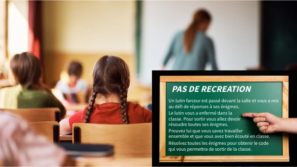 Le lutin vous a enfermé dans la classe. Pour sortir vous allez devoir résoudre toutes ses énigmes.