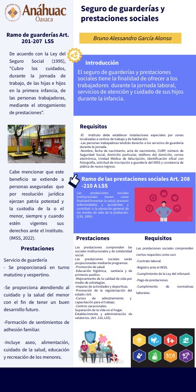 El seguro de guarderías y prestaciones sociales tiene la finalidad de ofrecer a los trabajadores durante la jornada laboral, servicios de atención y cuidado de sus hijos durante la infancia.