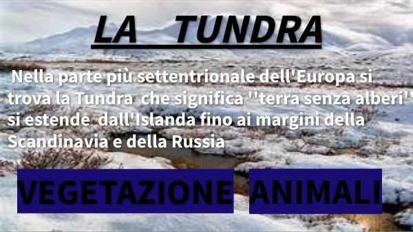 Nella parte più settentrionale dell'Europa si trova la Tundra che significa ''terra senza alberi'' si estende dall'Islanda fino ai margini della Scandinavia e della Russia