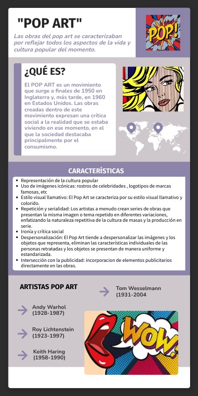 El POP ART es un movimiento que surge a finales de 1950 en Inglaterra y, más tarde, en 1960 en Estados Unidos. Las obras creadas dentro de este movimiento expresan una crítica social a la realidad que se estaba viviendo en ese momento, en el que la sociedad destacaba principalmente por el consumismo.