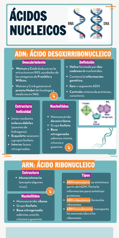 - ARN mensajero: se sintetiza a partir del ADN. Porta la información para sintetizar proteínas.