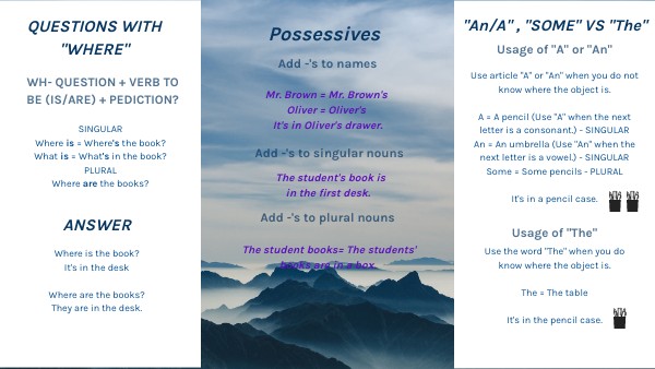 Use article "A" or "An" when you do not know where the object is.A = A pencil (Use "A" when the next letter is a consonant.) - SINGULARAn = An umbrella (Use "An" when the next letter is a vowel.) - SINGULAR Some = Some pencils - PLURAL It's in a pencil case.