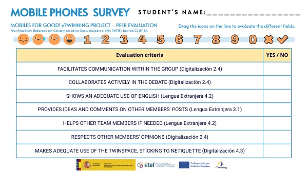 MOBILES FOR GOOD! eTWINNING PROJECT - PEER EVALUATION