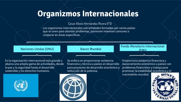 Los organismos internacionales son entidades formadas por varios países que se unen para abordar problemas, promover intereses comunes o cooperar en áreas específicas.