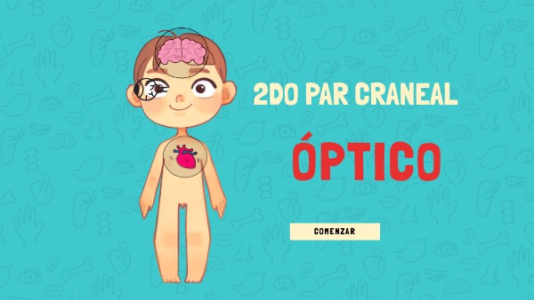 Tipo Aferente somático especial (ASE) Porciones Porción intraocular: en el disco óptico, donde las fibras se trasladan a la región retro-orbital Porción intraorbitaria: transcurre desde la parte posterior del globo ocular al conducto óptico, y está rodeada por las tres capas meníngeas Porción intracanalicular: dentro del conducto óptico del hueso esfenoides Porción intracraneal: viaja superior al diafragma de la silla turca y el seno cavernoso, finalmente formando el quiasma óptico Fibras Fibras visuales aferentes: transmiten impulsos visuales desde la retina hasta el cuerpo geniculado lateral del tálamo Fibras pupilares aferentes: regulan el reflejo pupilar o fotomotor Fibras eferentes: viajan a la retina, pero se desconoce su función Fibras fotostáticas: responsables de los reflejos visuales del cuerpo Irrigación Rama oftálmica de la arteria carótida interna, arterias ciliares posteriores, arteria central de la retina Vía óptica Nervio óptico -> tracto óptico-> cuerpo geniculado lateral -> radiaciones ópticas -> corteza visual (área 17 de Brodmann)