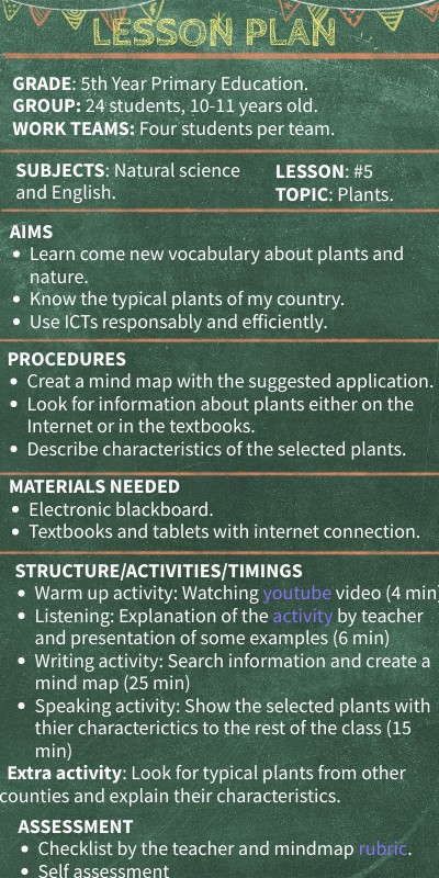 - Speaking activity: Show the selected plants with thier characterictics to the rest of the class (15 min)