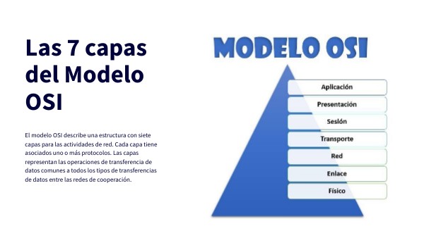 El modelo OSI describe una estructura con siete capas para las actividades de red. Cada capa tiene asociados uno o más protocolos. Las capas representan las operaciones de transferencia de datos comunes a todos los tipos de transferencias de datos entre las redes de cooperación.