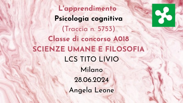 L'apprendimento Psicologia cognitiva(Traccia n. 5753) Classe di concorso A018 SCIENZE UMANE E FILOSOFIALCS TITO LIVIO Milano 28.06.2024 Angela Leone