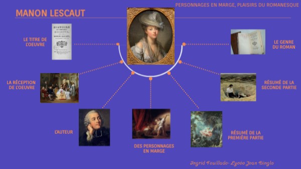 * Le plaisir de lire Manon Lescaut ne tient-il qu’au récit d’une passion amoureuse ?* Peut-on dire que Manon Lescaut est la véritable héroïne de ce roman ? * La représentation de personnages en marge de la société participe-t-elle chez l’abbé Prévost à un projet littéraire satirique et moraliste ? * Quel est le type de plaisir romanesque dans Manon Lescaut ? * Dans Manon Lescaut, est-ce parce que les personnages sont marginaux qu’ils sont romanesques ?