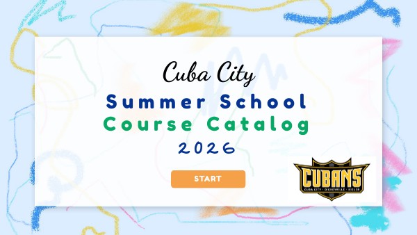 We are very excited to offer an array of academic and remedial courses as well as fun, unique and interesting sessions that will both perk your child's curiosity and strengthen new and existing skills. Read about our course offerings on the following pages by hovering over the course title to help make a list of classes you would like your child to take. On the final page, click on the registration link and complete the form once for each child you are registering. Do not combine students into one form. REGISTRATION CLOSES MAY 9TH. Students are welcome to bring a snack along to enjoy during class. There will be no breakfast or lunch served and very few snacks provided by the school. Students taking physical classes should also bring a water bottle and possibly sunscreen if outdoors. Bussing to and/or from school is available for students following the same guidelines as during the school year. If your 1st-3rd grade child lives inside the city limits of Cuba City, an In-Town Transportation Form will need to be completed and submitted to the office for approval prior to being able to ride the bus. Regarding Special Education and IEP's: Summer school courses are not considered "special education compliant" as they are not required classes. Therefore, elements of your child's IEP will not be followed.