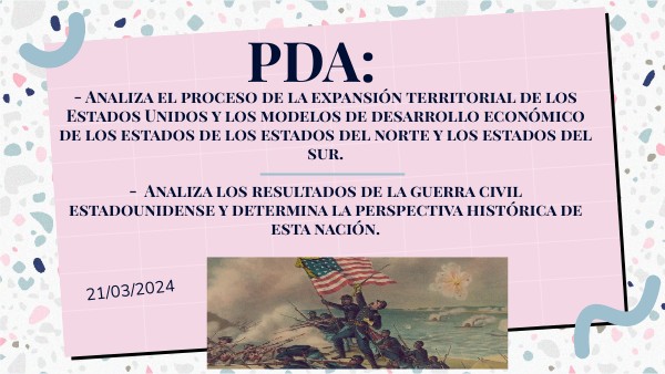- Analiza el proceso de la expansión territorial de los Estados Unidos y los modelos de desarrollo económico de los estados de los estados del norte y los estados del sur. - Analiza los resultados de la guerra civil estadounidense y determina la perspectiva histórica de esta nación.