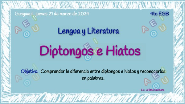 Objetivo: Comprender la diferencia entre diptongos e hiatos y reconocerlos en palabras.