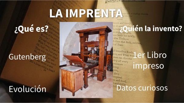 A ciencia cierta no se sabe quien la inventó, pero Johannes Gutenberg la perfecccionó en 1440, inspirado en una maquina industrial para presionar uvas, usando letras y signos de puntuación con plomo, un material mucho mas resistente y limpio que la madera. su técnica perdúro sin cambios hasta el siglo xx.