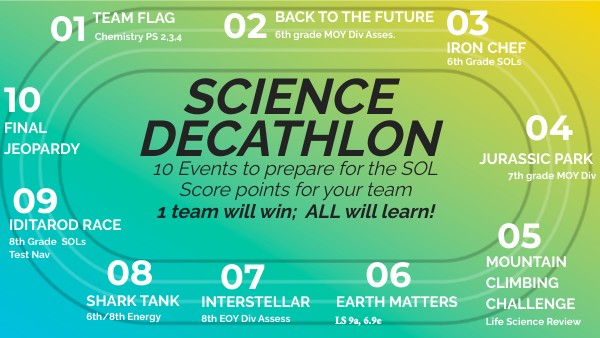 10 Events to prepare for the SOL Score points for your team 1 team will win; ALL will learn!