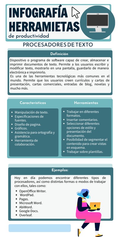 Es una de las herramientas tecnológicas más comunes en el mundo. Permite que los usuarios creen currículos y cartas de presentación, cartas comerciales, entradas de blog, novelas y mucho más.