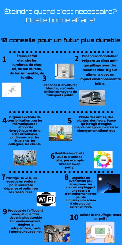 Éteins et fait éteindre les lumières: de chez toi, de ton bureau, de ton immeuble, de ta ville.