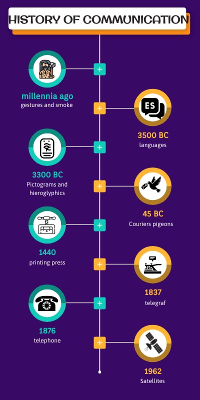 At the beginning of communications, gestural language and smoke predominated to share messages because there was no language to speak.