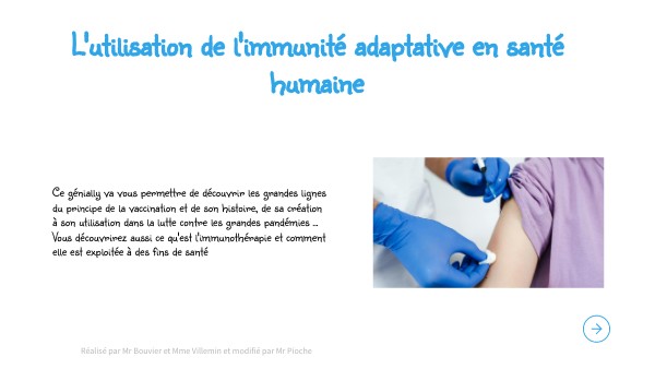 Ce génially va vous permettre de découvrir les grandes lignes du principe de la vaccination et de son histoire, de sa création à son utilisation dans la lutte contre les grandes pandémies ... Vous découvrirez aussi ce qu'est l'immunothérapie et comment elle est exploitée à des fins de santé