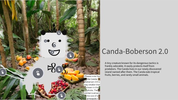 A tiny creature known for its dangerous tactics is frankly adorable. It easily protects itself from predators. The Canda lives in our newly discovered island named after them. The Canda eats tropical fruits, berries, and rarely small animals.