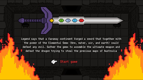 Legend says that a faraway continent forged a sword that together with the power of the Elemental Gems (fire, water, air, and earth) could defeat any evil. Gather the gems to assemble the ultimate weapon and defeat the dragon trying to steal the precious maps of Australia