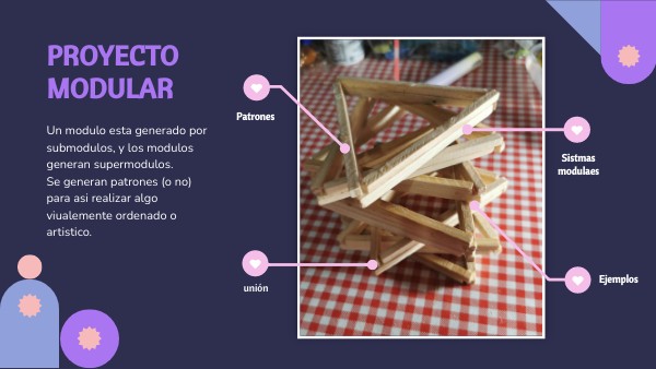 El sistema de modulos se se divide en 3 partes y/o faces, donde es una especie de estructura donde tiene uno o varios patrones los cuales pueden ser evidentes o no para asi poder realizar una piza ya terminada donde incluye las 3 faces del sistema modular.