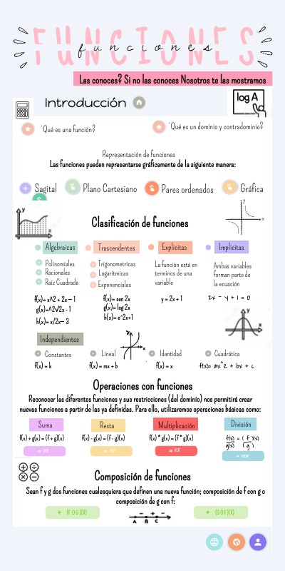 Reconocer las diferentes funciones y sus restricciones (del dominio) nos permitirá crear nuevas funciones a partir de las ya definidas. Para ello, utilizaremos operaciones básicas como: