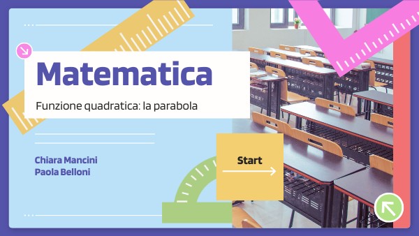 Note:Da qui in poi andiamo ad analizzare e ad imparare a costruire la parabola partendo dagli elementi che la costituiscono. Prevediamo di fare questo in più lezioni, proiettando le slide ma chiedendo l'interazione degli alunni. Ogni elemento verà analizzato e si può prevedere prima di passare all'elemento successivo, anche eventuali esercizi per consolidare l'apprendimento di quanto appena spiegato.