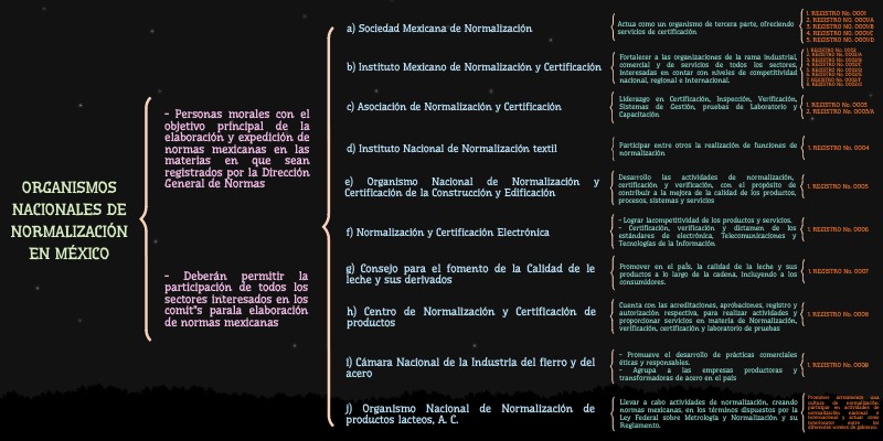 - Personas morales con el objetivo principal de la elaboración y expedición de normas mexicanas en las materias en que sean registrados por la Dirección General de Normas