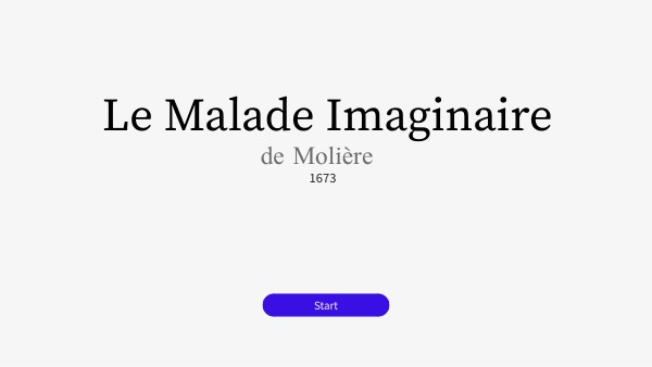 "Le Malade Imaginaire" est une pièce de théâtre en prose écrite par Molière et représentée pour la première fois le 10 février 1673 et du genre de la comédie.